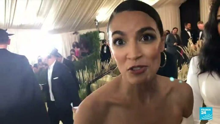 2021-09-15T032223Z The letter F. And she dressed for the theme In America. Alexandria Ocasio-Cortez arrived at last nights.