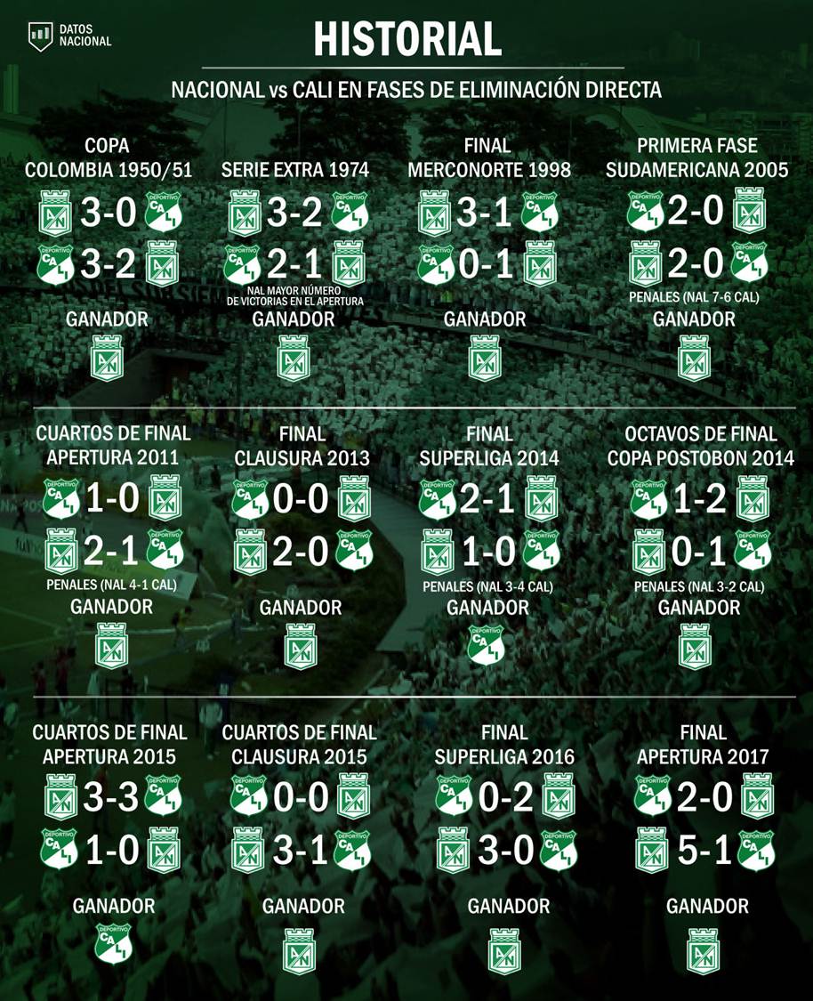 Deportivo Cali Vs Nacional Historial De Los Enfrentamientos En Eliminacion Directa Semaforo Deportivo