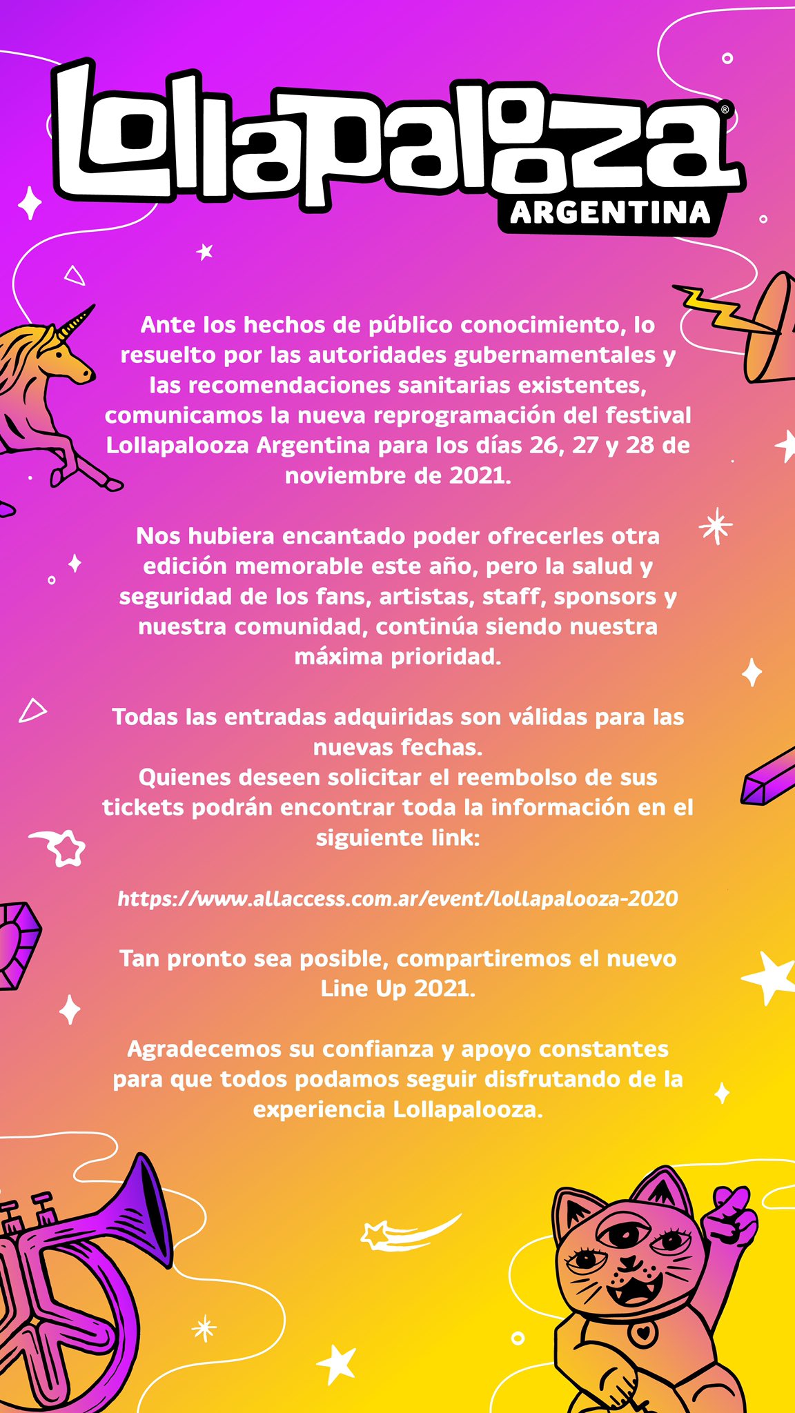 Santander Argentina Pa Twitter El Lollapalooza Queda Reprogramado Para Noviembre 2021 Con El Fin De Preservar La Salud Y La Seguridad De Toda La Comunidad Recorda Que Todas Las Entradas Adquiridas Son
